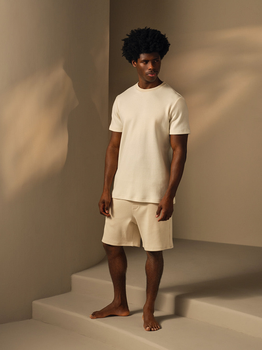 Materiality shapes our relationship with nature, grounding the body in comfort and connection. Made in UK from a refined blend of lightweight cotton and luxurious cashmere, this intricately hand-finished lounge set is both warm and breathable. Thoughtfully designed for moments of stillness and movement alike, it speaks through texture – subtle, yet deeply felt.