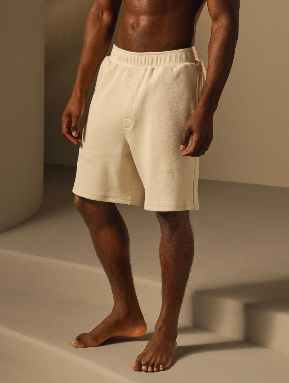 Materiality shapes our relationship with nature, grounding the body in comfort and connection. Made in UK from a refined blend of lightweight cotton and luxurious cashmere, the intricately hand-finished lounge shorts are both warm and breathable. Thoughtfully designed for moments of stillness and movement alike, it speaks through texture – subtle, yet deeply felt.