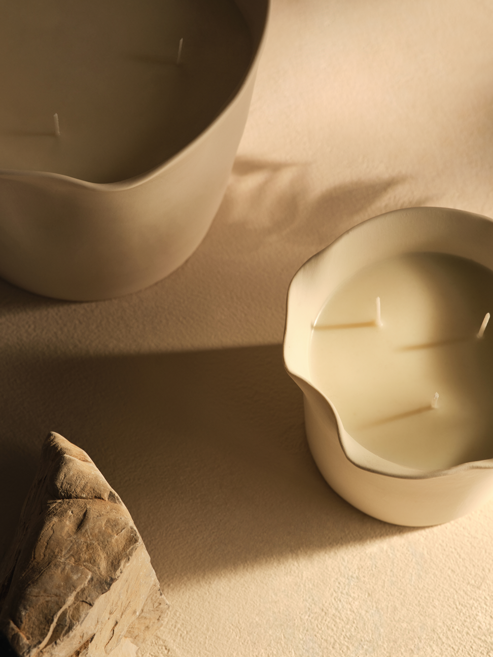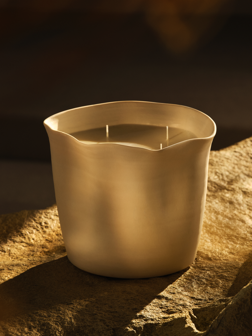 Our exclusively one-of-a-kind candles are limited to a single edition. Hand-poured with positive intention and rooted in the symbolism of the acacia tree, this artisanal candle blends acacia wood, frankincense, and sandalwood for a deeply immersive, grounding fragrance. Made with vegan soy wax and housed in a handcrafted ceramic vessel, its design, inspired by natures curves & waves, harmonises natural materials, rhythmic patterns and rich textures. Made once, never again.