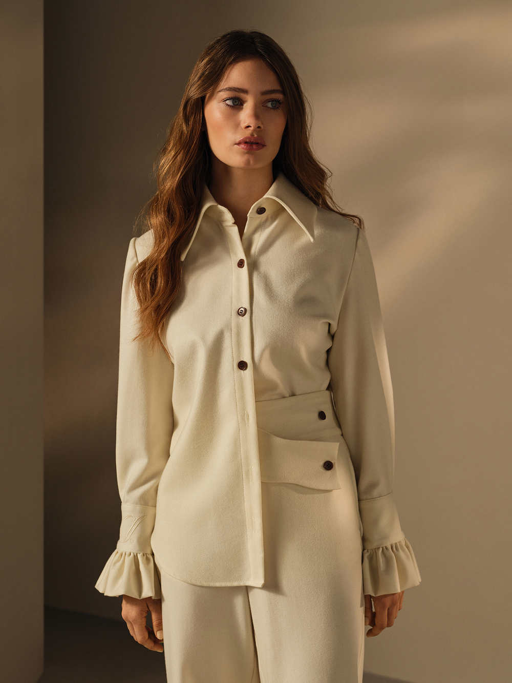 A relaxed, oversized silhouette is informed by the fluid geometry of the natural landscape. Lines that curve and taper with organic precision. A decorative wave echoes the motion of water, balancing structure and softness.