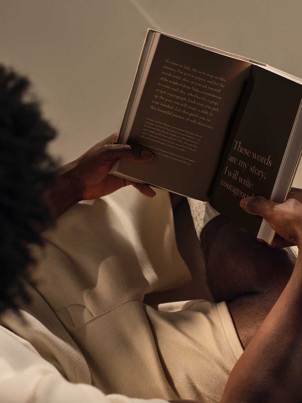 The act of writing has the vivid power to guide the multisensory mind towards safety, connection and even joy. With carefully written prompts to help you immerse in the art of self-discovery, this journal is a space for you to build new beginnings and rid yourself of the weight of thought – as our founder discovered on her own healing journey.